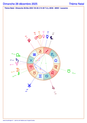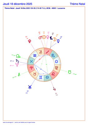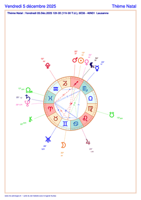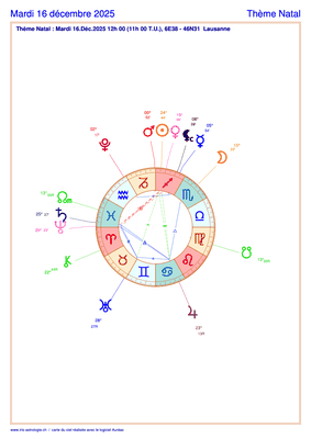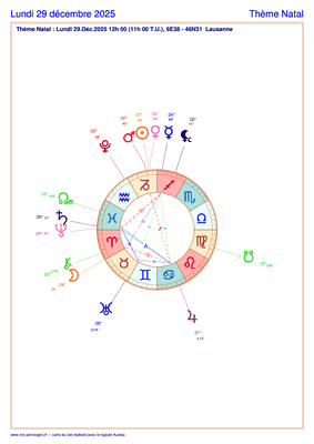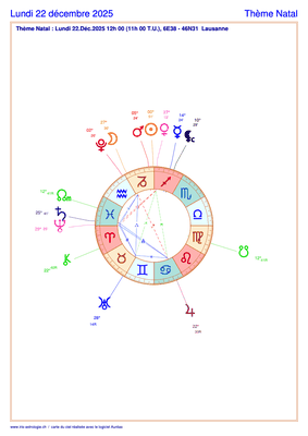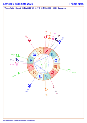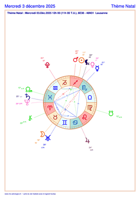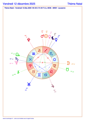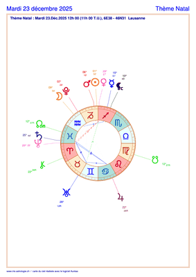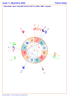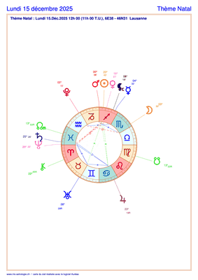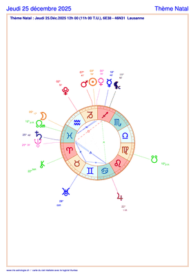 Voici les cartes du ciel du mois de décembre 2025 (chaque jour à midi), calculées avec le logiciel Auréas (aureas.eu).