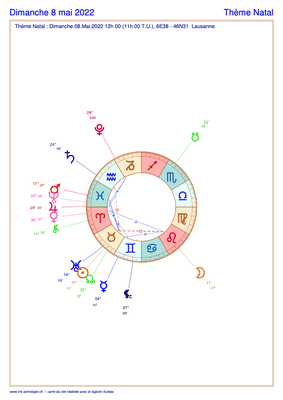 Voici les cartes du ciel du mois de mai 2022 (chaque jour à midi), calculées avec le logiciel Aureas (aureas.eu).