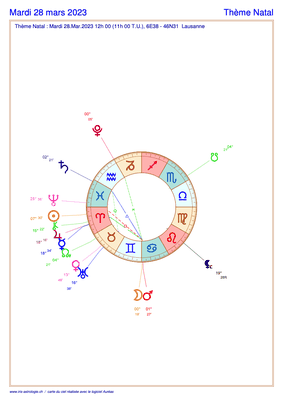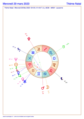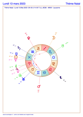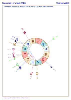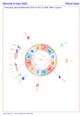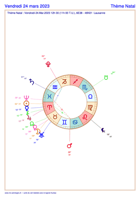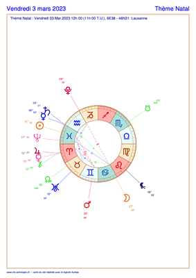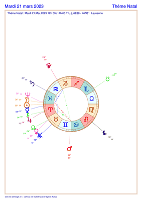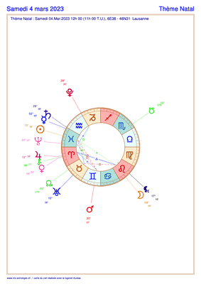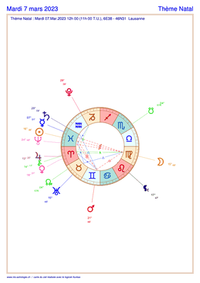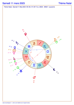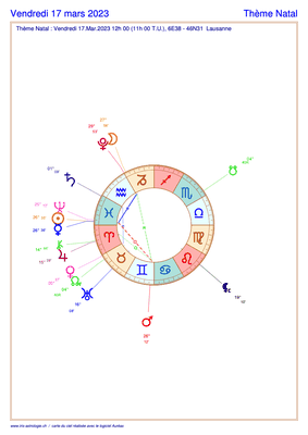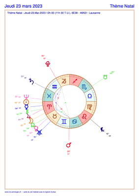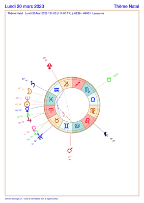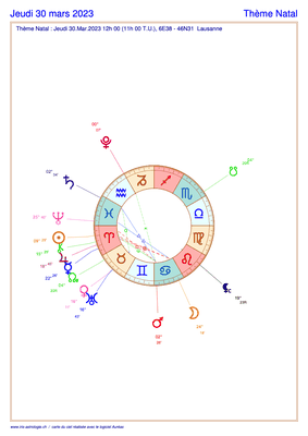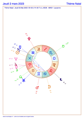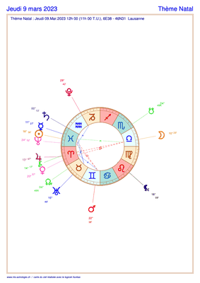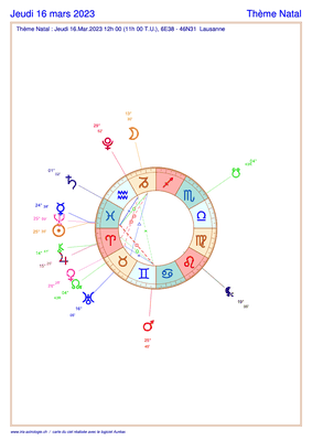 Voici les cartes du ciel du mois de Mars 2023 (chaque jour à midi), calculées avec le logiciel Aureas (aureas.eu).