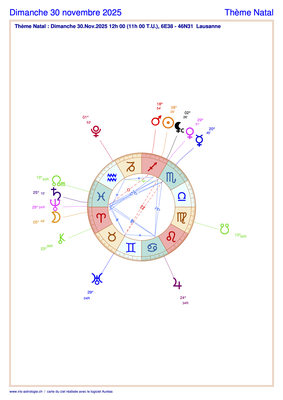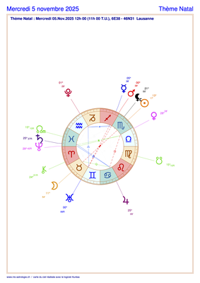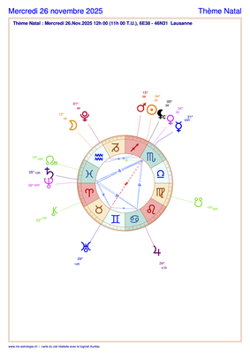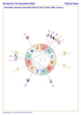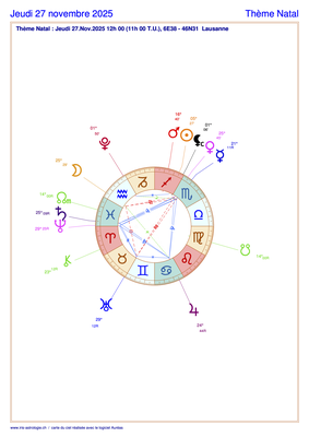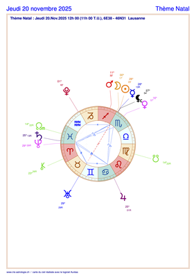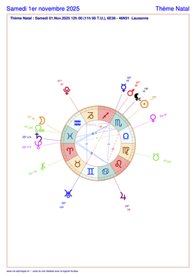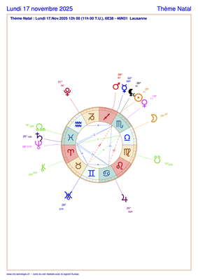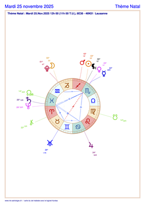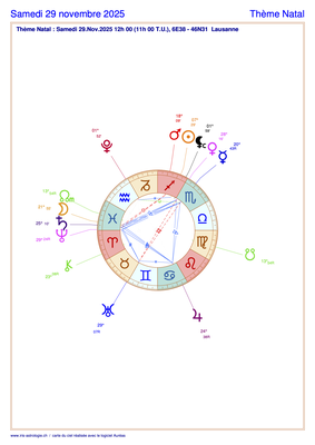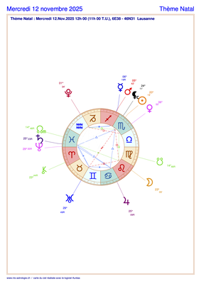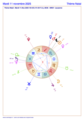 Voici les cartes du ciel du mois de novembre 2025 (chaque jour à midi), calculées avec le logiciel Auréas (aureas.eu).