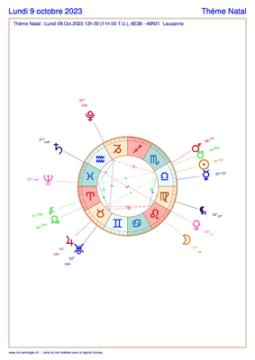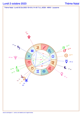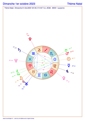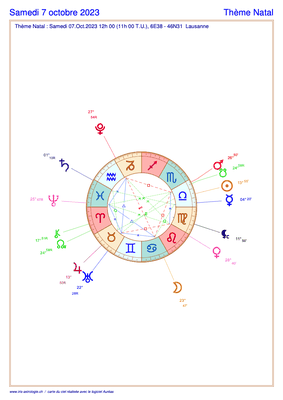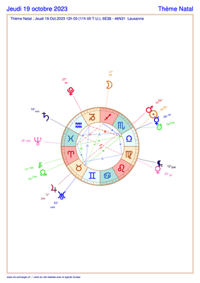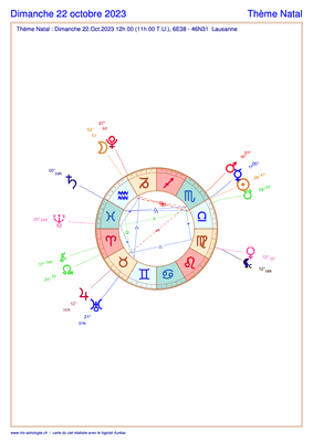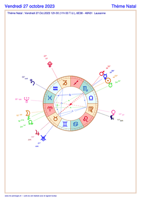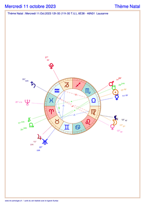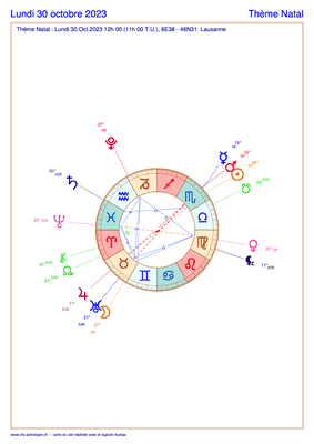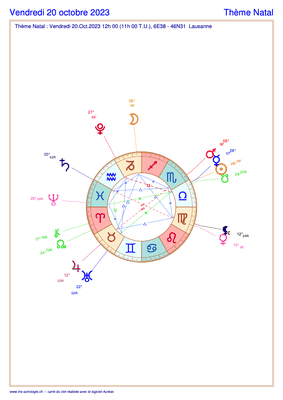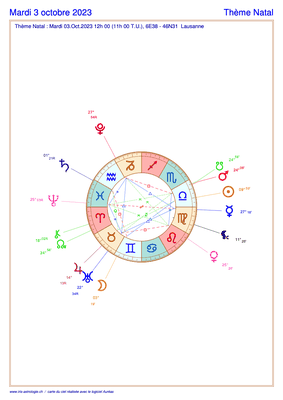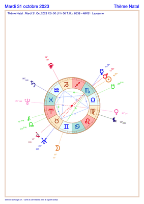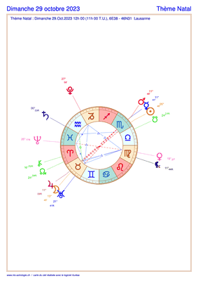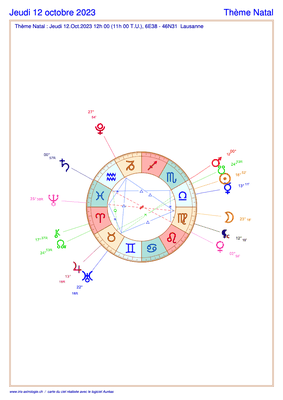 Voici les cartes du ciel du mois d'Octobre 2023 (chaque jour à midi), calculées avec le logiciel Aureas (aureas.eu).